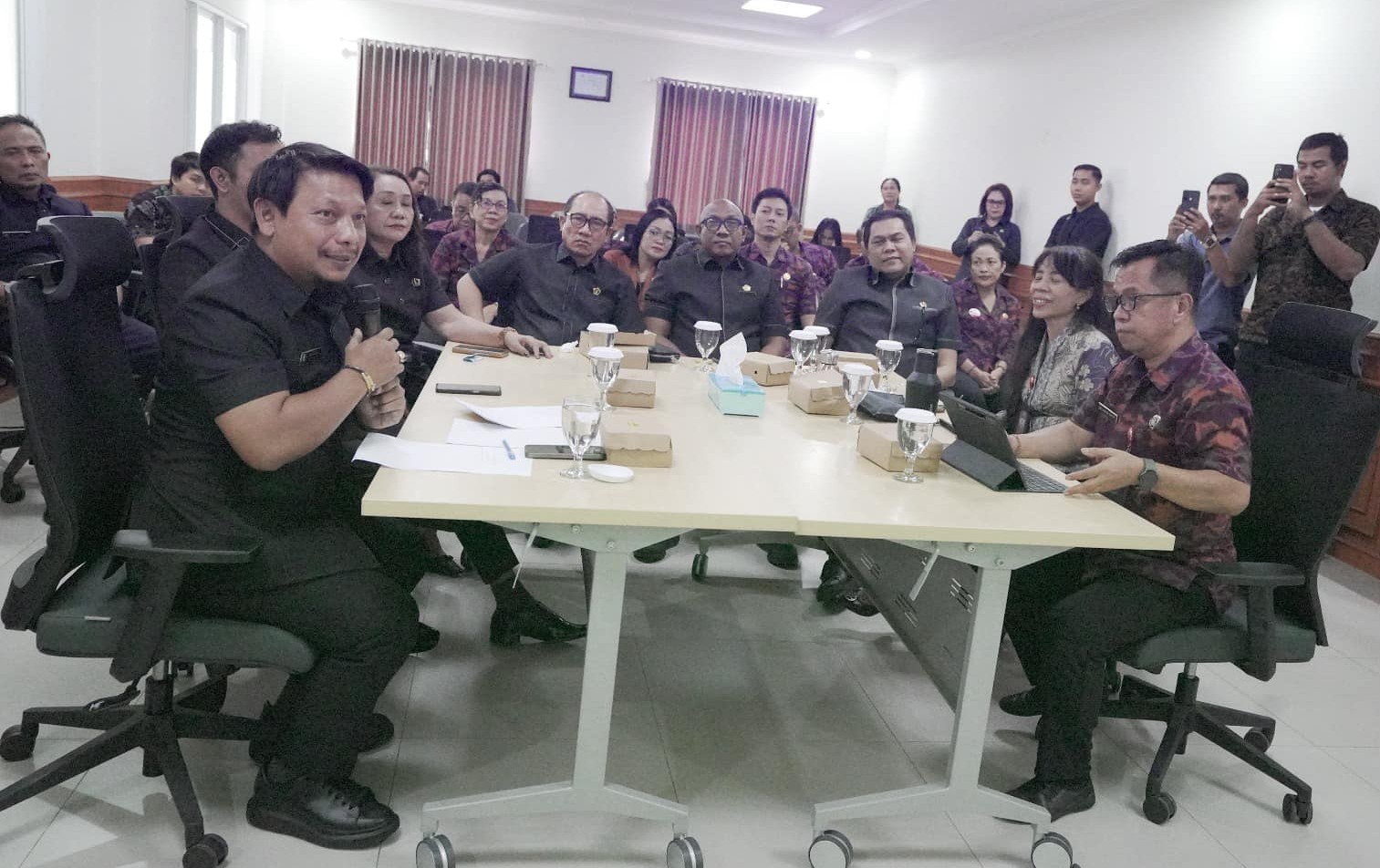 Pada kesempatan itu, salah satu anggota Dewan yang kebetulan dari Kapal meminta Direksi RSD Mangusada untuk memperketat pengawasan terhadap karyawan atau pegawai RSD. Tidak jarang ditemukan adanya pegawai RSD yang keluar atau bolos untuk sejumlah kepentingan. “Dalam meningkatkan layanan, tentu saja hal seperti ini tak boleh terjadi. Karyawan harus siaga dalam memberi pelayanan kepada pasien,” ujar Made Suwardana. (sar)