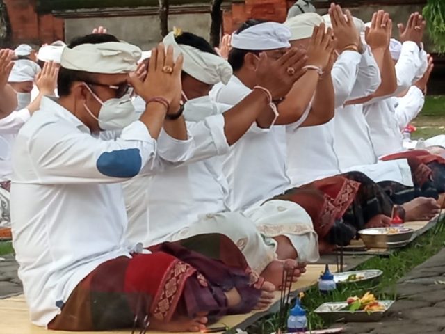SEMBAHYANG – Persembahyangan bersama Wakil Walikota Denpasar, IGN Jaya Negara di Pura Agung Jagatnatha bertepatan dengan Budha Manis Wuku Prangbakat pada Rabu (16/12).