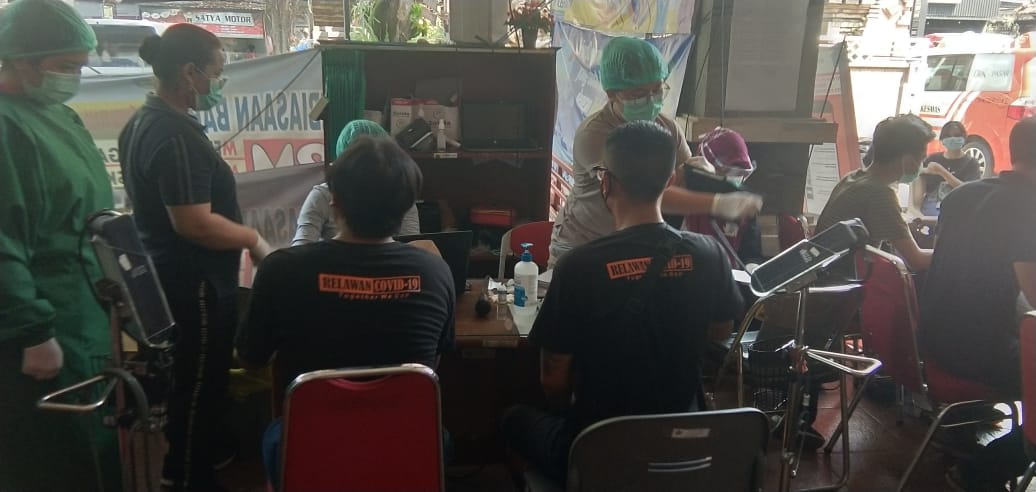 VAKSINASI – Suasana vaksinasi untuk kalangan relawan covid-19 Banjar Kertasari, Sabtu (10/4/2021).
