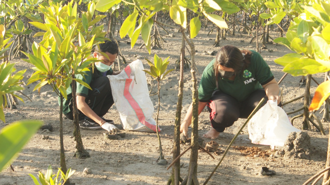 Pembersihan sisa plastik di akar bakau serangkaian WEDA 2022.