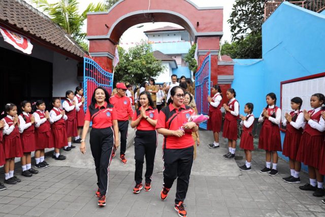 PENILAIAN – Wakil Ketua I Yayasan Kanker Indonesia (YKI) pengurus cabang Badung Ny. Kristiani Suiasa melakukan penilaian dan pembinaan terhadap PKTP SD Fajar Harapan, Selasa (27/8).