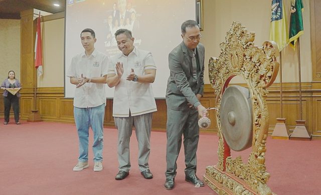 TALK SHOW – Pj. Sekda Badung IB Surya Suamba membuka acara Talk Show Investasi dan Kewirausahaan Bagi Anak Muda di Kabupaten Badung yang ditandai dengan pemukulan gong, Selasa (1/10) di Ruang Kertha Gosana, Puspem Badung.