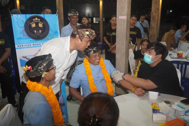 Antusiasme warga Desa Adat Sumbung, Kecamatan Mengwi mengikuti pemeriksaan kesehatan gratis yang digelar Barisan Muda Suyadinata Calon Bupati Badung Wayan Suyasa dan Calon Wakil Bupati Badung Putu Alit Yandinata pada Jumat (18/10/2024).