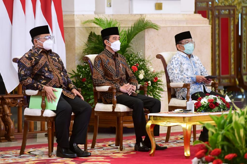LDII – Presiden Joko Widodo saat membuka secara virtual Musyawarah Nasional (Munas) IX Lembaga Dakwah Islam Indonesia (LDII) dari Istana Negara, Jakarta, pada Rabu, 7 April 2021.