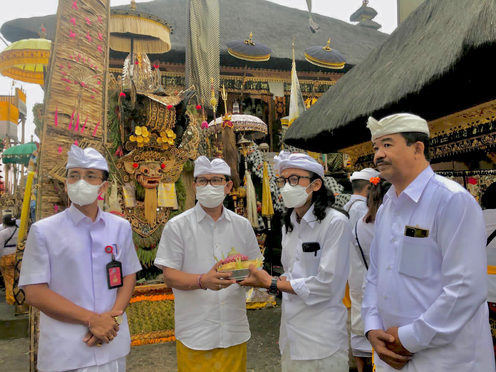 Pada kesempatan tersebut Sekda Adi Arnawa dan jajaran melaksanakan persembahyangan bersama dengan pemedek, dilanjutkan dengan penyerahan punia sebesar Rp 25 juta yang diterima panitia karya.