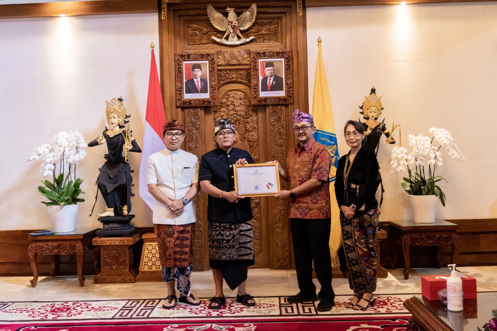 Direktur Koordinasi dan Supervisi Wilayah V Komisi Pemberantasan Korupsi Republik Indonesia (KPK RI) Budi Waluyo menyerahkan sertifikat penghargaan kepada provinsi, kab/kota terbaik dalam pemberantasan tindak pidana korupsi bidang pencegahan periode 1 Januari – 30 November 2023 bertempat di Ruang Pertemuan Rumah Jabatan Gubernur Bali, Jaya Sabha Denpasar, Kamis (21/12).