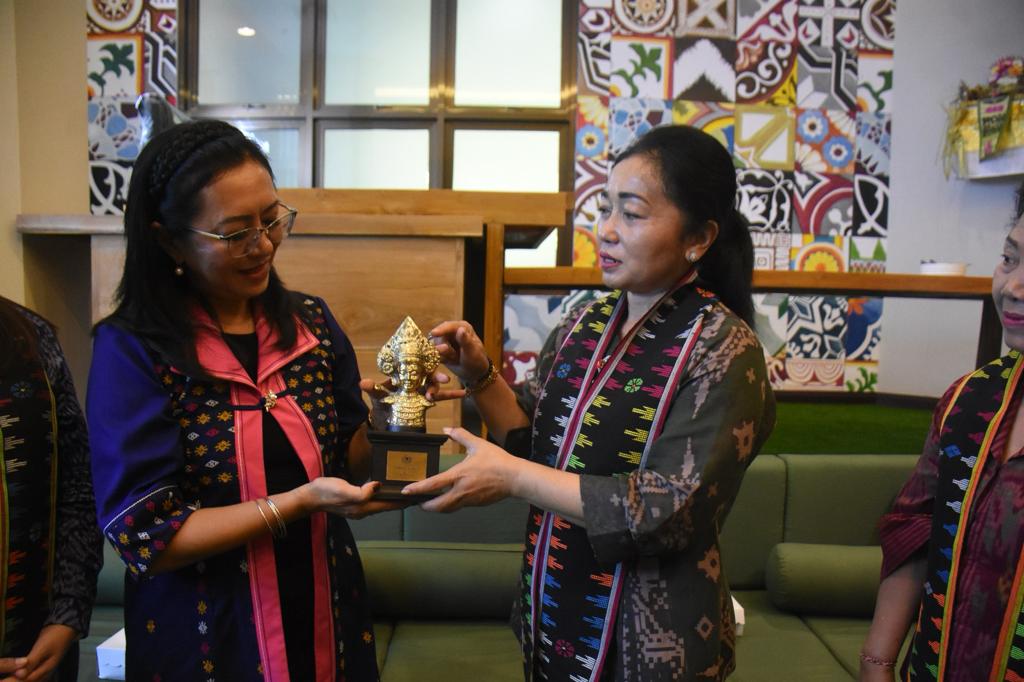 Diterima di Gedung Dharma Negara Alaya, turut pula menyambut Wakil Ketua Dekranasda Kota Denpasar, Ny. Ayu Kristi Arya Wibawa serta Wakil Ketua Harian Dekranasda Kota Denpasar, Ny. Ida Ayu Widnyani Wiradana.