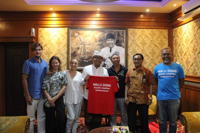 DUKUNG PENUH – Pemkot Denpasar mendukung penuh aksi beach clean up di kawasan pantai Sanur. Tampak Wawali Arya Wibawa menerima Komunitas Malu Dong, Selasa (23/5/2023).