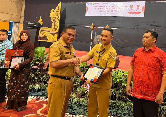 BUKA AFIRMASI – Sekretaris Kota Denpasar Ida Bagus Alit Wiradana membuka Afirmasi Belanja Produk Dalam Negeri dan Usaha Mikro Kecil Menengah (UMKM) melalui E-Purchasing di Aston Hotel, Senin (19/2).