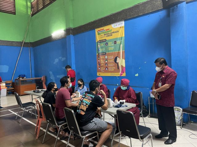 Pemkot Denpasar terus menggenjot pelaksanaan vaksin booster. Sekda Kota Denpasar, IB Alit Wiradana melakukan peninjauan langsung pelaksanaan vaksinasi booster di Kelurahan Pemecutan pada Jumat (25/3). Untuk menjaga trend melandainya kasus covid-19 di Kota Denpasar, selain melakukan penegakan yustisi penerapan prokes, pelaksanaan vaksinasi booster juga terus dilakukan.