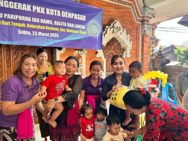 Pemerintah Kota Denpasar melalui Dinas Pemberdayaan Perempuan dan Perlindungan Anak Pengendalian Penduduk dan Keluarga Berencana (P3AP2KB) berinergi dengan TP PKK Kota Denpasar kembali menyerahkan alat bantu penyuluhan Bina Keluarga Balita (BKB) Kit Stunting. Bantuan diserahkan langsung Ketua TP PKK Kota Denpasar Ny. Sagung Antari Jaya Negara didampingi Ketua GOW Kota Denpasar Ayu Kristi Arya Wibawa, di Banjar Kebon Kuri Tengah, Kelurahan Kesiman pada Kamis (15/8/2024).