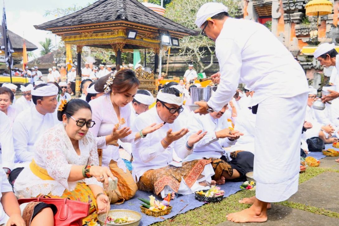 “Dengan pelaksanaan pujawali ini, mari kita tingkatkan rasa sradha bhakti kita sebagai upaya menjaga harmonisasi antara parahyangan, pawongan, dan palemahan sebagai impelementasi Tri Hita Karana,” ujar Arya Wibawa.