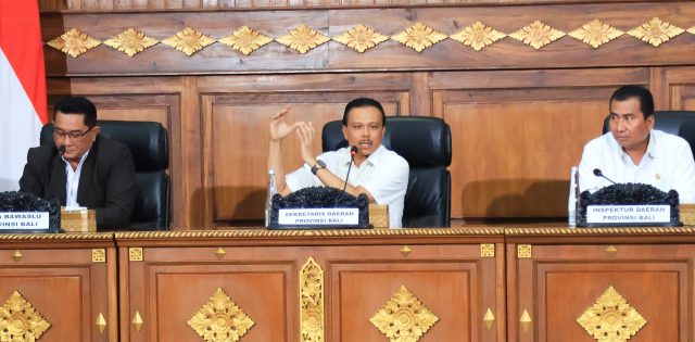 NETRALITAS – Sekda Dewa Indra menghadiri Sosialisasi Netralitas Pilkada Serentak di Wiswa Sabha Utama, Kantor Gubernur Bali, Rabu (21/8) siang.