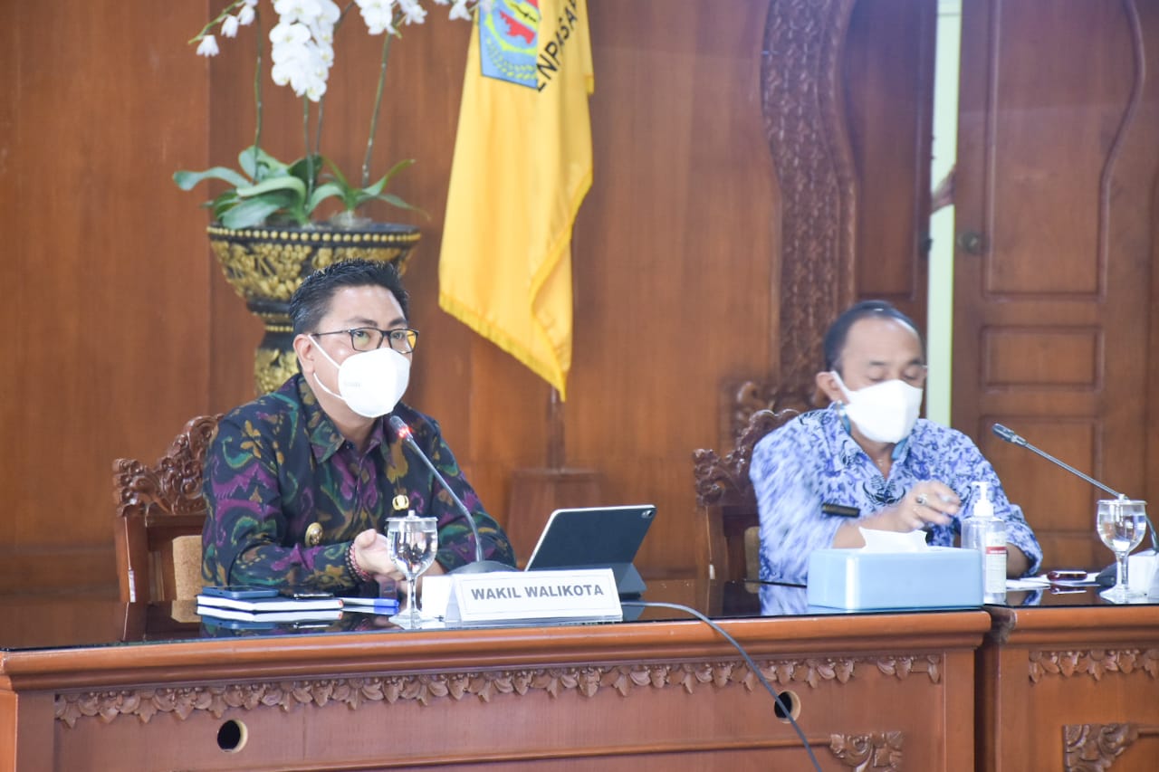 PENATAAN SANUR – Rapat kordinasi penataan kawasan pantai Sanur yang dipimpin Wakil Walikota Denpasar, I Kadek Agus Arya Wibawa di Kantor Walikota Denpasar, Jumat (17/9).