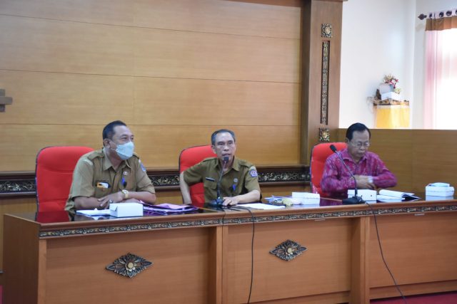 PPDB – Kepala Dinas Pendidikan Kepemudaan dan Olahraga (Disdikpora) Kota Denpasar, AA Gede Wiratama didampingi Ketua Panitia PPDB, AA Putu Gede Astara, saat sosialisasi PPDB Tahun 2022/2023 bersama perbekel/lurah se-Kota Denpasar, Senin (13/6).
