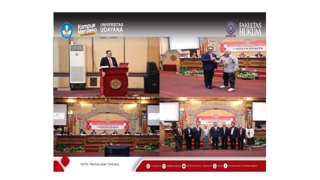 Ujian terbuka dipimpin langsung oleh Dekan FH Unud Prof. Dr. Putu Gede Arya Sumerta Yasa, S.H., M.Hum, dihadiri oleh Tim Promotor Prof. Dr. Ibrahim R, SH, MH, Dr. Gede Marhaendra Wija Atmaja, SH., M.Hum, Dr. I Dewa Made Suartha, SH, MH dan 4 dosen penguji lainnya.