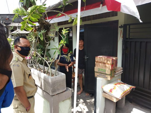 Perbekel Desa Dangin Puri Klod Serahkan Sembako kepada 9 Keluarga yang Laksanakan Isolasi Mandiri