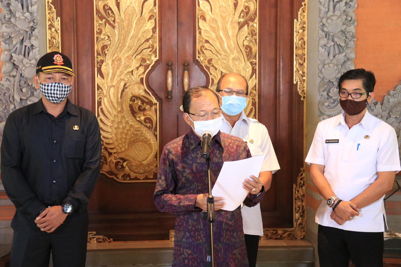 Gubernur Bali Wayan Koster didampingi Kasatpol PP Dewa Nyoman Rai Darmadi, Karo Hukum & HAM IB Sudarsana, dan Kepala Badan Riset Wayan Gunaja, Rabu (26/8/2020) meluncurkan Pergub No.46 tahun 2020. Pergub yang diluncurkan di kediaman Jaya Sabha tersebut mengatur soal penerapan disiplin dan penegakan hukum protokol kesehatan sebagai upaya pencegahan dan pengendalian coronavirus disease 2019 dalam tatanan kehidupan era baru.