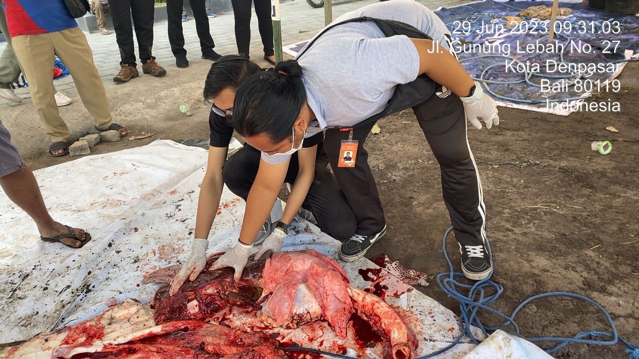 Adapun petugas yang diterjunkan terdiri atas lebih dari 8 orang dokter hewan, 150 orang mahasiswa dan juga 6 orang dosen atau tenaga pegajar FKH Univrsitas Udayana. “Petugas hari ini melakukan pemeriksaan postmortem hewan kurban di 145 lokasi penyembelihan. Untuk pemeriksaan antemortem pada hewan kurban telah kami lakukan kemarin (Rabu, 28 Juni),” jelasnya.