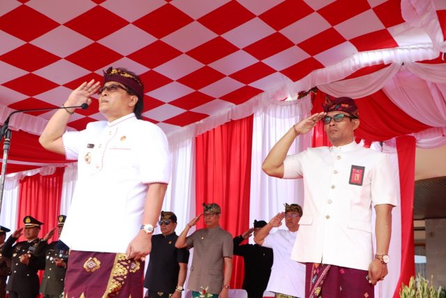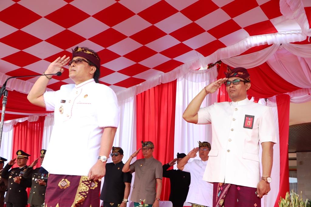 Upacara Peringatan Detik-detik Proklamasi Kemerdekaan Republik Indonesia ke-74 di Kabupaten Badung, Sabtu (17/8) di Lapangan Puspem Badung berlangsung tertib dan khidmat. Selaku Inspektur Upacara, Bupati Badung I Nyoman Giri Prasta dan Komandan Upacara, Pasiter Kodim 1611/Badung, Kapten Inf. I Wayan Suara. Peringatan tahun ini sedikit berbeda dengan tahun-tahun sebelumnya, dimana peserta upacara mengenakan busana adat bali. Upacara diikuti Forum Koordinasi Pimpinan Daerah Kabupaten Badung, Wakil Bupati Badung I Ketut Suiasa, Pimpinan dan anggota DPRD Badung, Legiun Veteran Republik Indonesia (LVRI) Badung, Organisasi Wanita di Badung, jajaran ASN Pemkab Badung, TNI/Polri serta Pelajar.