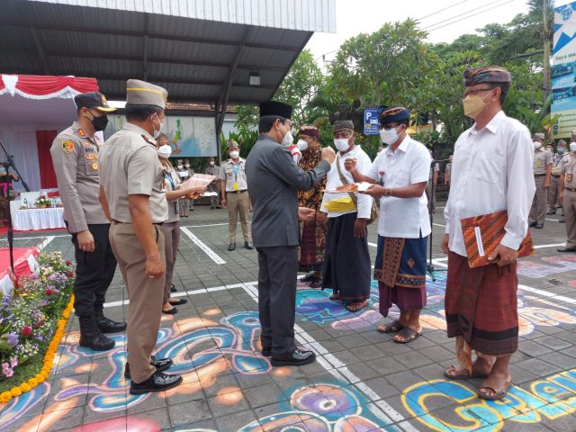 Dalam kesempatan tersebut Sekda Adi Arnawa selaku pembina upacara melakukan penyematan tanda kehormatan satya lencana karya satya secara simbolis kepada pegawai di lingkungan Kantah Badung. Penyerahan sertifikat atas nama Pemerintah Provinsi Bali No. Hak 00106 Desa Blahkiuh dan sertifikat atas nama Kabupaten Badung No. Hak 00910 Desa Jimbaran.