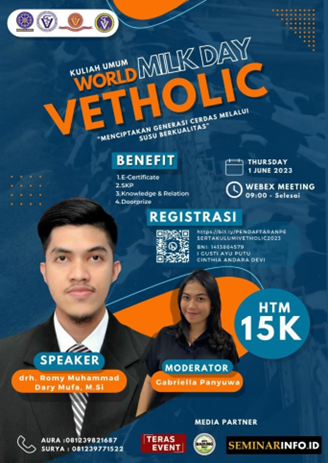 Minat Profesi Veterinary Holic Fakultas Kedokteran Hewan Universitas Udayana mengadakan kegiatan kuliah umum 1 dalam rangka memperingati Hari Susu Sedunia. Kegiatan ini merupakan kegiatan rutin dari Minat Profesi Veterinary Holic. Hari Susu Sedunia diperingati setiap tanggal 1 Juni dan pada tahun ini Minat Profesi Vetholic mengadakan bertepatan di tanggal 1 Juni dengan 2 kegiatan yang dilaksanakan yaitu kuliah umum dan pembagian susu ke panti asuhan.