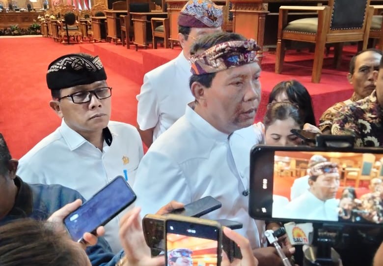 JAWAB MEDIA – Ketua DPRD Badung Gusti Anom Gumanti menjawab media usai memimpin rapat paripurna istimewa serangkaian HUT ke-16 Mangupura, Minggu (16/11/2025).