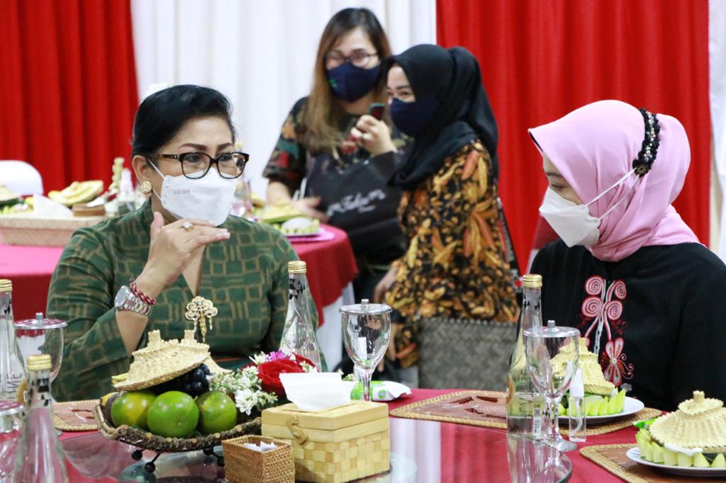 KUNJUNGAN – Ketua Dekranasda Bali Ny. Putri Koster menerima kunjungan Dekranasda Kota Batu, Kamis (10/6).