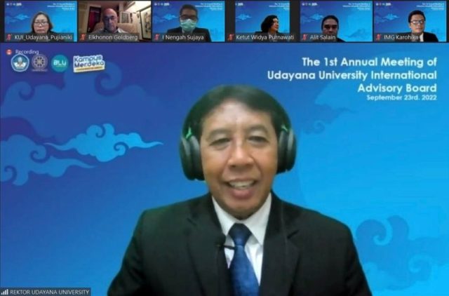 Universitas Udayana (Unud) melalui Lembaga Pengembangan Pembelajaran dan Penjaminan Mutu (LP3M) menyelenggarakan “The 1st Annual Meeting of Udayana University International Advisory Board” yang berlangsung secara daring melalui Zoom Meeting, Jumat (23/9/2022).