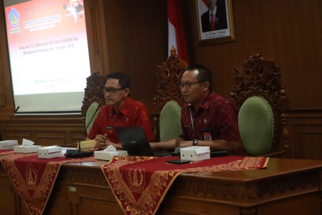SOSIALISASI – Bagian Organisasi Setda Badung melaksanakan Sosialisasi PermenPAN RB No. 20 tahun 2018 tentang Pedoman Evaluasi Kelembagaan Instansi Pemerintah, Jumat (6/3) di Ruang Kriya Gosana, Puspem Badung.