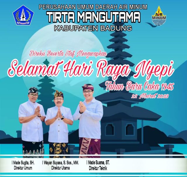 Beranda Badung News Perumda Air Minum Tirta Mangutama Kabupaten Badung Ucapkan Selamat Hari Raya Nyepi... Badung NewsBerita UtamaBudaya Perumda Air Minum Tirta Mangutama Kabupaten Badung Ucapkan Selamat Hari Raya Nyepi Tahun Saka 1945 Penulis BaliViralNews - Maret 19, 2023 FacebookTwitterPinterestWhatsApp Baca Juga Bupati Adi Arnawa Upasaksi Karya Ngenteg Linggih di Pura Pucak Sari Sangeh