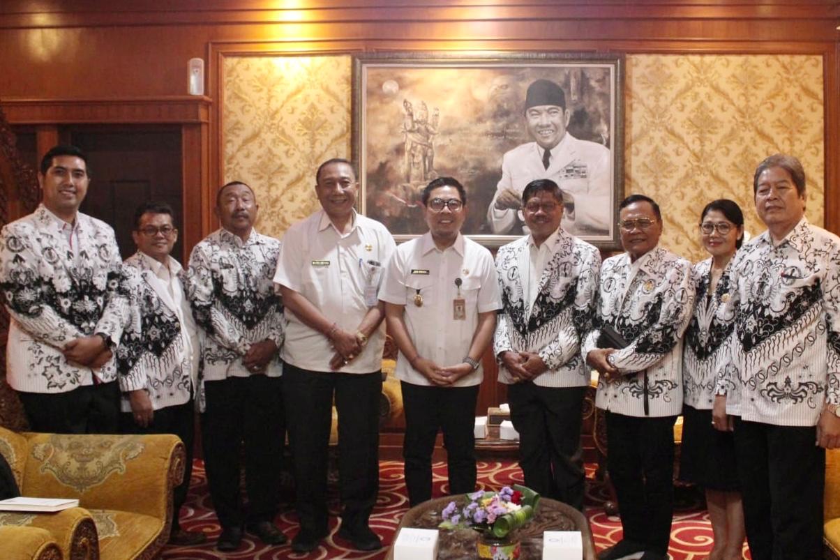 AUDIENSI PGRI – Wawali Arya Wibawa menerima audiensi jajaran PGRI Denpasar yang dipimpin Ketut Suarya pada Rabu (8/1) di Kantor Walikota Denpasar.
