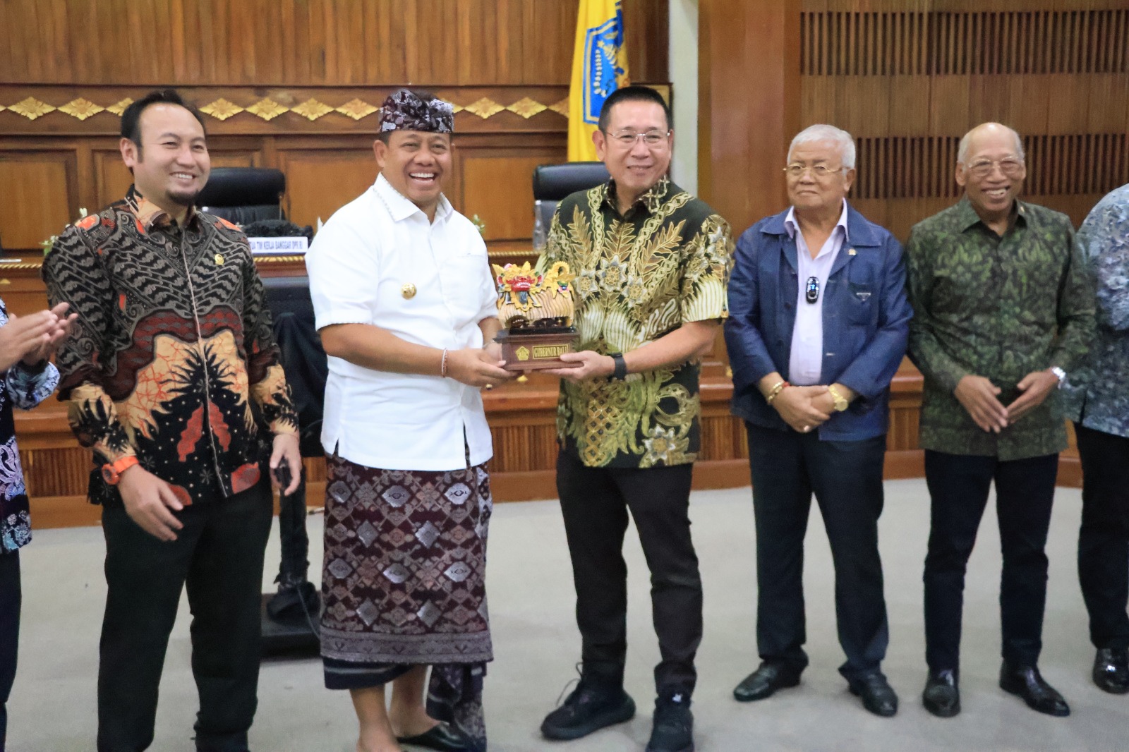 BADAN ANGGARAN – Penjabat (Pj) Gubernur Bali SM Mahendra Jaya menerima kunjungan kerja Badan Anggaran DPR RI di Gedung Wiswa Sabha, Kantor Gubernur Bali, pada Kamis (21/11).
