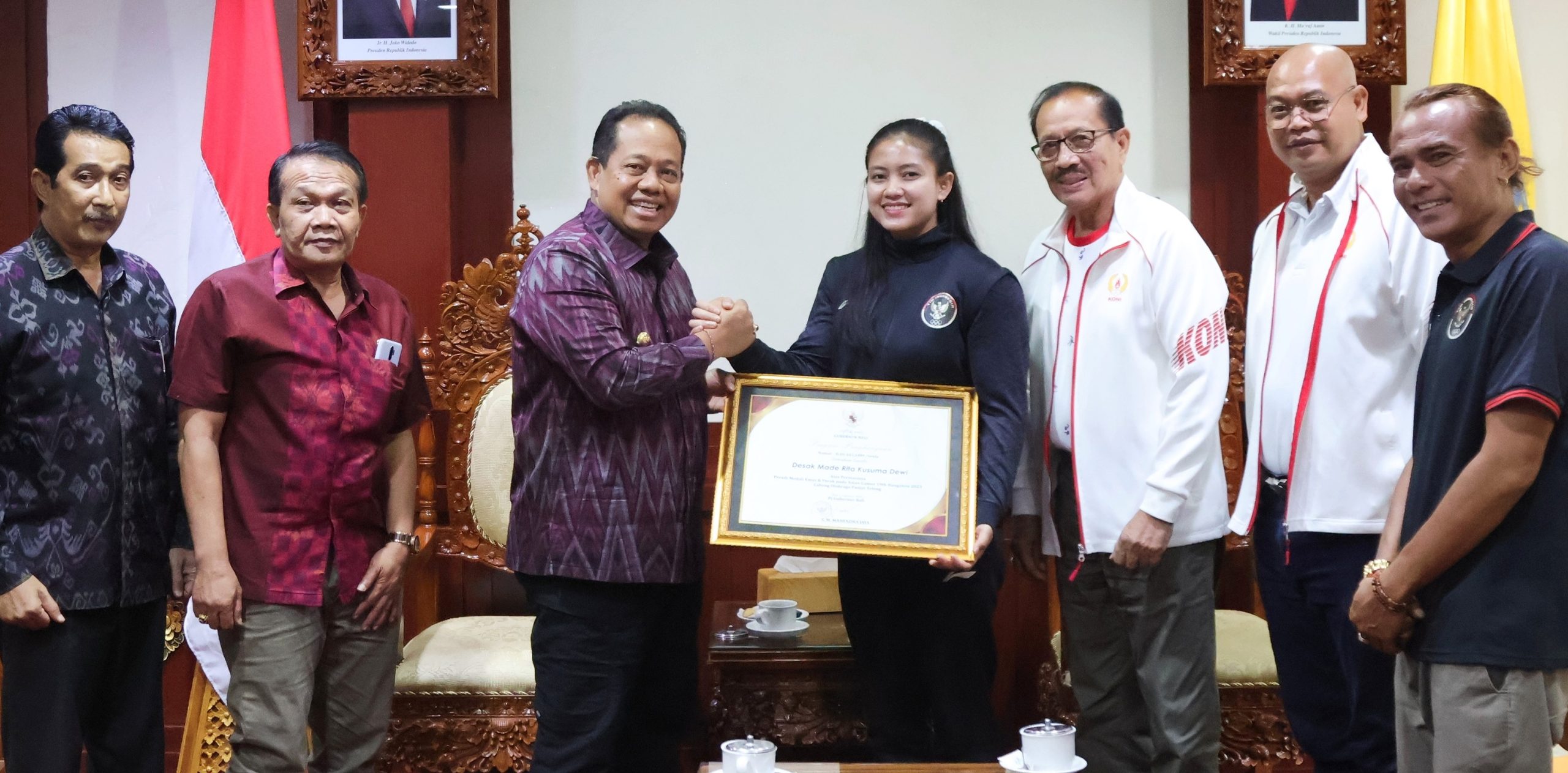Beranda Bali News Pj. Gubernur Bali Serahkan Penghargaan dan Bonus Asian Games kepada Desak Rita...