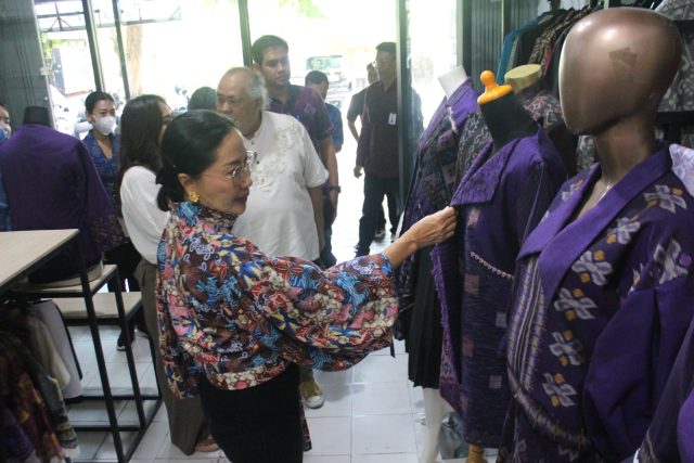 Usai mengunjungi Haluan Bali, Ida Mahendra Jaya melanjutkan monitoring ke Luh Jaum, yang sedang mempersiapkan desain berbahan kain tenun endek dengan paduan warna ungu dan hitam. Desain ini dipersiapkan khusus untuk peragaan busana Dekranasda Bali.
