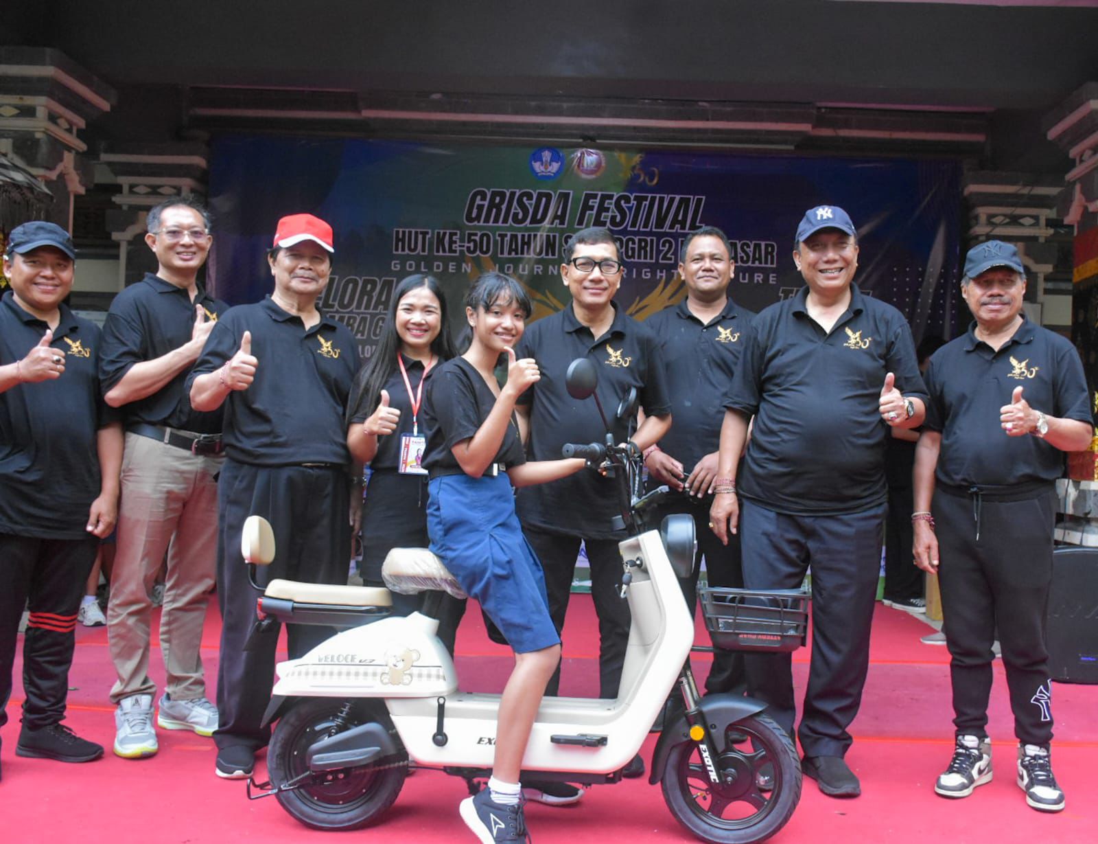 Penjabat (Pj) Sekretaris Daerah Kota Denpasar I Gusti Ngurah Eddy Mulya menghadiri fun walk yang digelar serangkaian Grisda Festival di Gedung SMP PGRI 2 Denpasar, Jalan Meduri, Rabu (21/1). Kegiatan yang digelar selama lima hari dari Senin (19/1) hingga Jumat (23/1) ini merupakan rangkaian HUT ke-50 SMP PGRI 2 Denpasar (Grisda). Dalam kesempatan tersebut, Pj. Sekda Eddy Mulya turut menyerahkan hadiah utama berupa sepeda listrik.