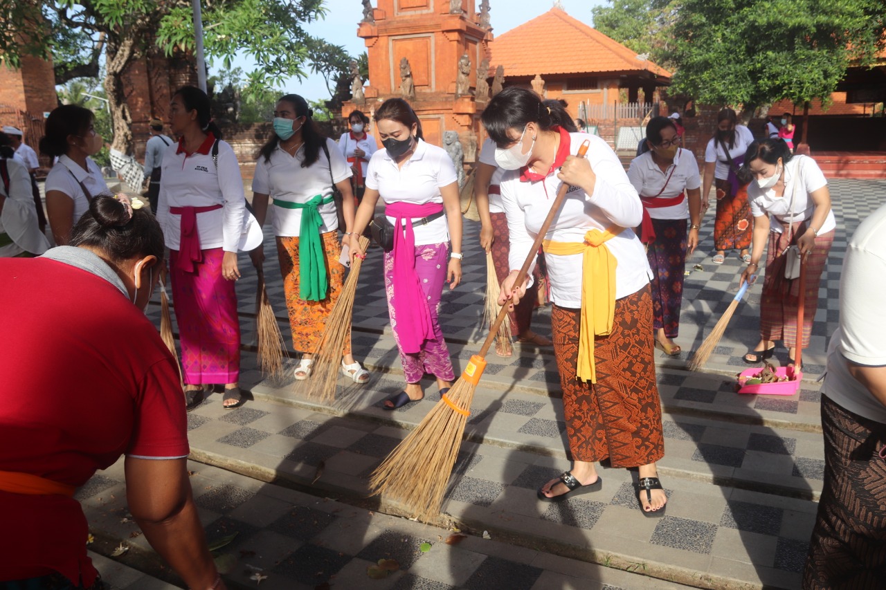 MARERESIK – Ketua TP PKK Kabupaten Badung Nyonya Seniasih Giri Prasta mengajak anggota dan organisasi kewanitaan untuk mareresik sekaligus sembahyang bersama di Pura Petitenget, Jumat (24/6).