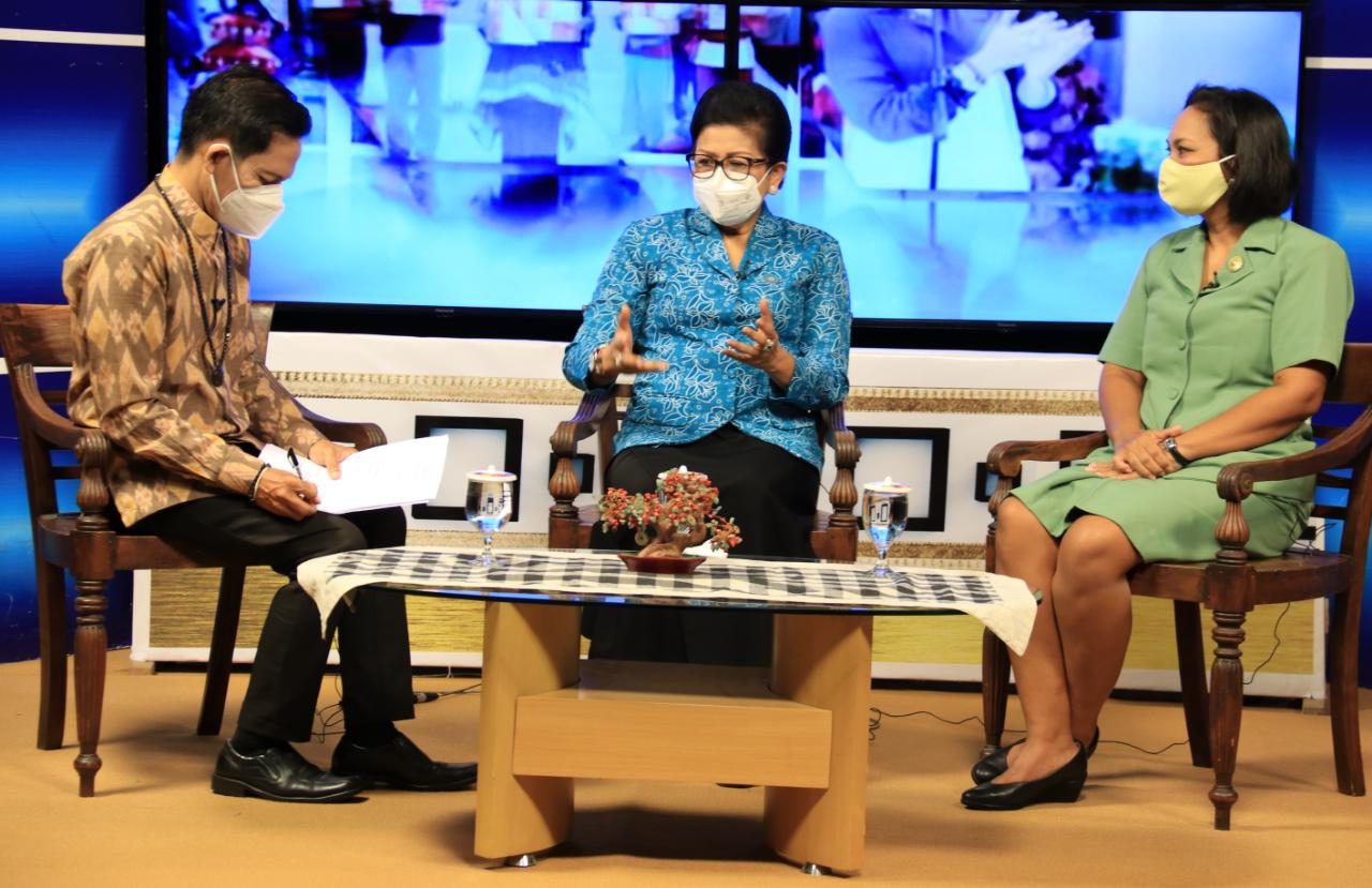 NARASUMBER – Ketua TP PKK Bali Ny. Putri Suastini Koster tampil sebagai narasumber dalam dialog interaktif di sebuah stasiun TV, Jumat (22/1/2021).