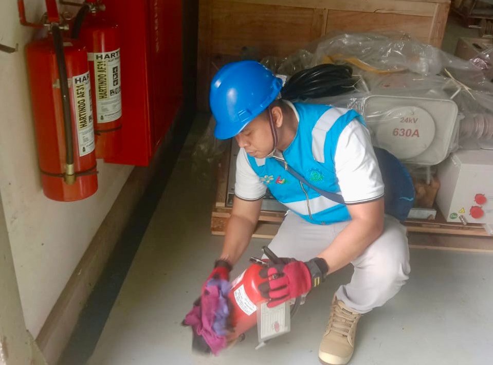 Petugas PLN melakukan inspeksi visual dan pemeriksaan teknis pada APAR.