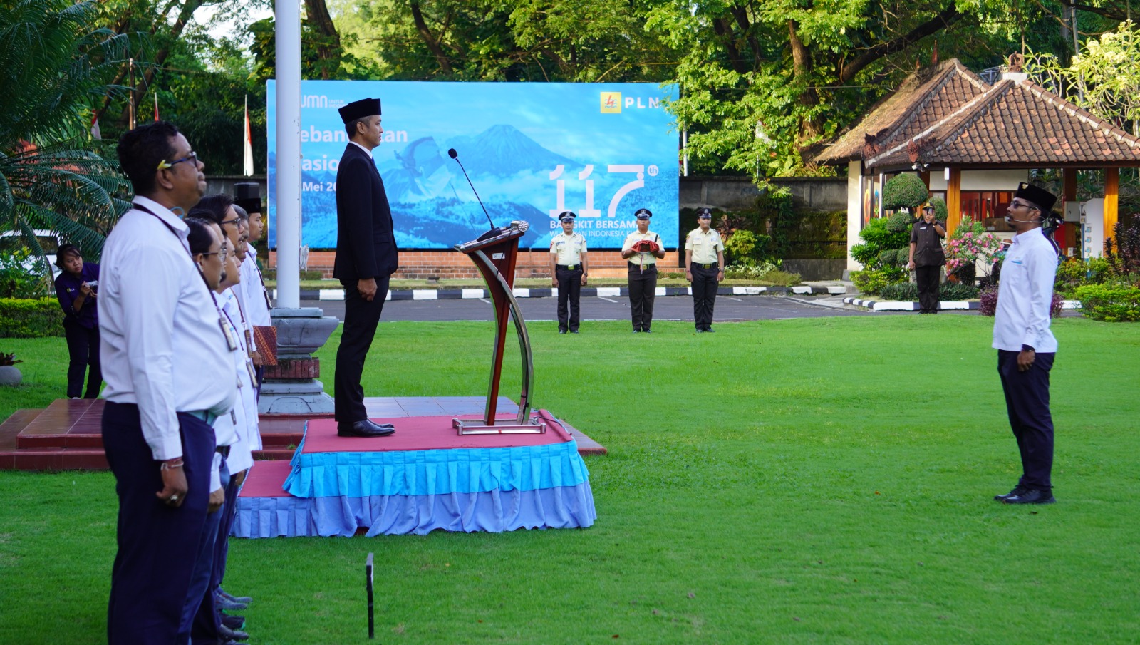 KEBANGKITAN NASIONAL – General Manager PT PLN (Persero) UID Bali Eric Rossi Priyo Nugroho (di atas podium) sebagai pembina dalam upacara peringatan Hari Kebangkitan Nasional yang ke 117.