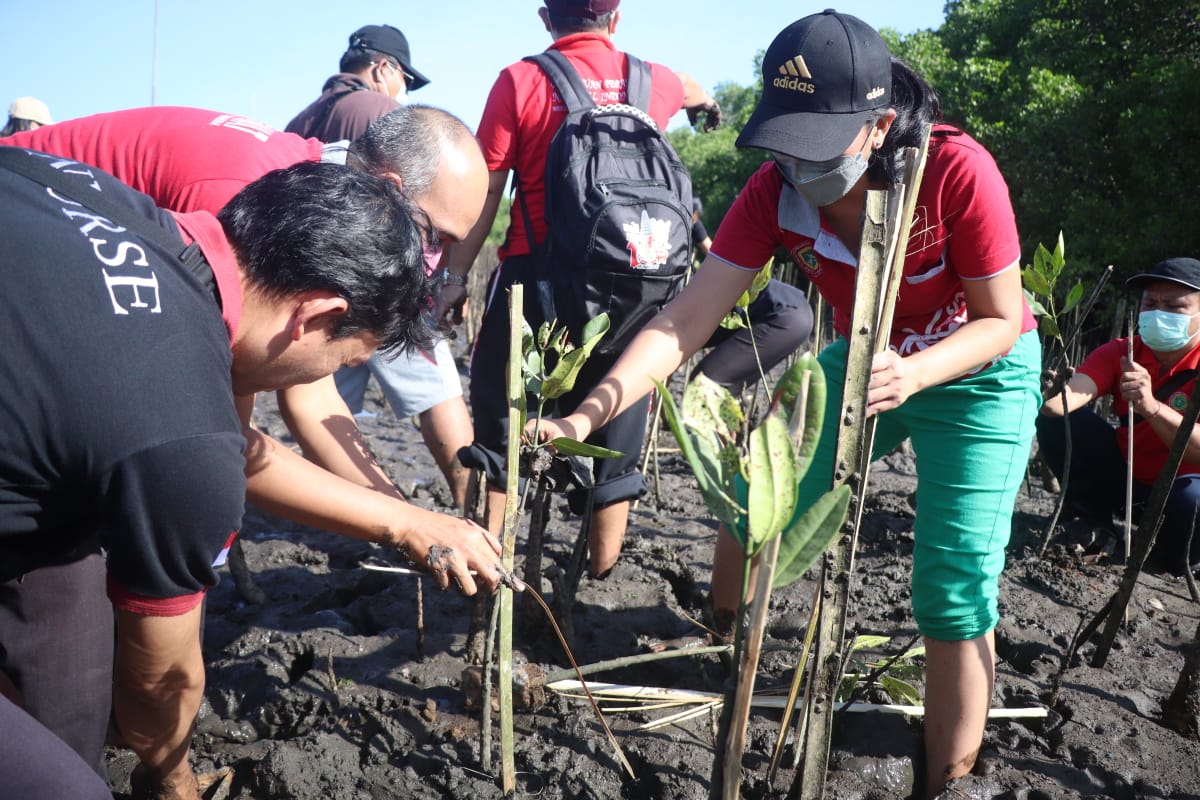 MANGROVE – PPNI Kabupaten Badung melakukan aksi penanaman 200 pohon mangrove di Wana Segara Kertih Kedonganan, Kecamatan Kuta Kabupaten Badung, Sabtu (27/8).