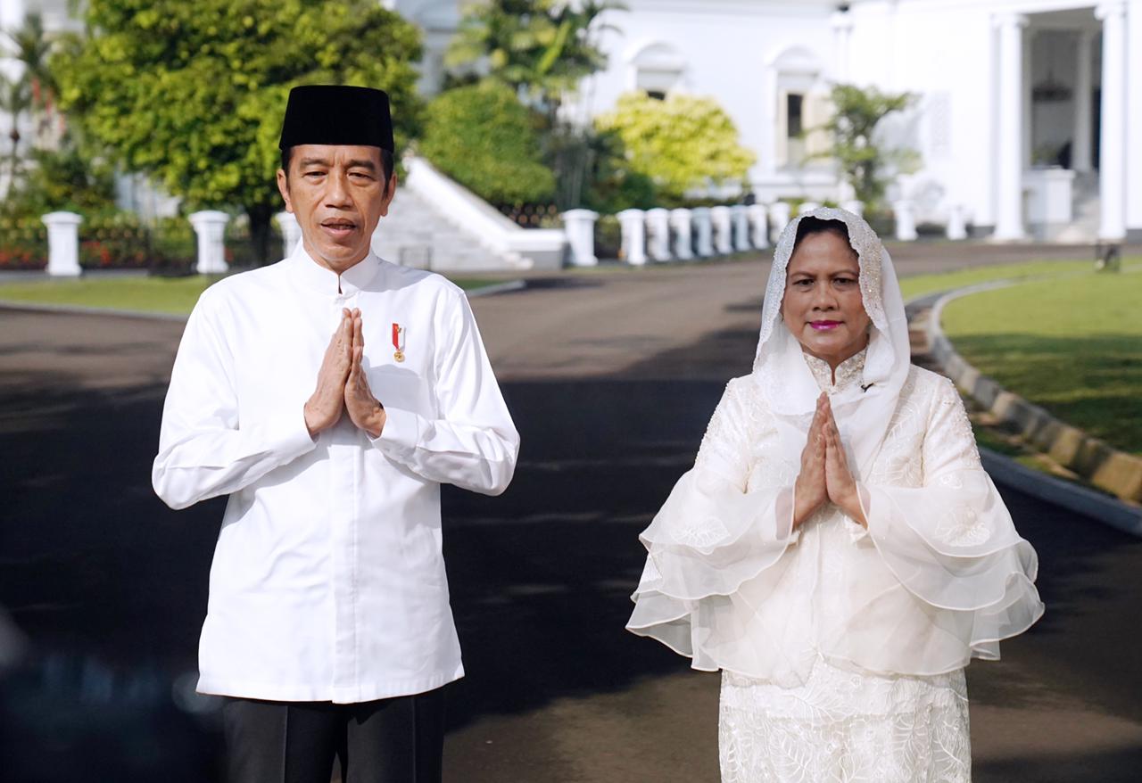 Ibu Negara Iriana yang berada di samping Presiden juga menyampaikan ucapan berhari raya Idulfitri kepada seluruh masyarakat Indonesia. “Saya juga mengucapkan selamat Hari Raya Idulfitri, mohon maaf lahir dan batin,” ucapnya.