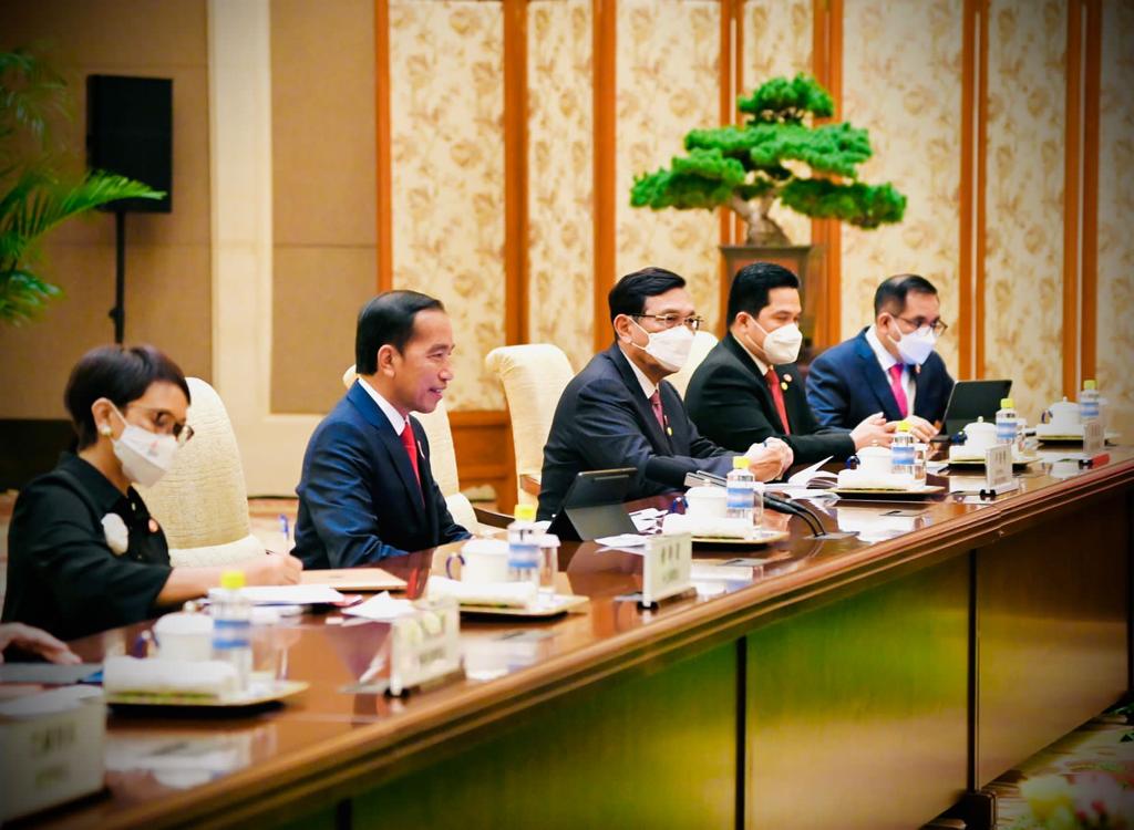 Turut mendampingi Presiden Jokowi dalam pertemuan dengan Presiden Xi Jinping yaitu Menteri Koordinator Bidang Kemaritiman dan Investasi Luhut Binsar Pandjaitan, Menteri Luar Negeri Retno Marsudi, Menteri Sekretaris Negara Pratikno, Menteri BUMN Erick Thohir, Menteri Investasi/Kepala BKPM Bahlil Lahadalia, dan Duta Besar RI Beijing Djauhari Oratmangun. (sar/hmpres)