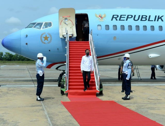 TIBA – Presiden tiba di Kalimantan Tengah dengan menggunakan pesawat Kepresiden Indonesia-1, Kamis (8/10/2020).
