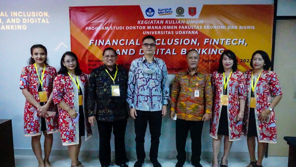 Program Studi Doktor Manajemen FEB Unud menyelenggarakan kegiatan kuliah umum dengan tema “Financial Inclusion, Fintech, and Digital Banking” pada hari Jumat, (27/5/2022) di Gedung BI Lantai III Fakultas Ekonomi dan Bisnis Universitas Udayana. Pada kuliah umum ini Program Studi Doktor Manajemen menghadirkan narasumber yang merupakan salah satu Guru Besar FEB Universitas Indonesia yakni Prof. Dr. Irwan Adi Ekaputra, MM.
