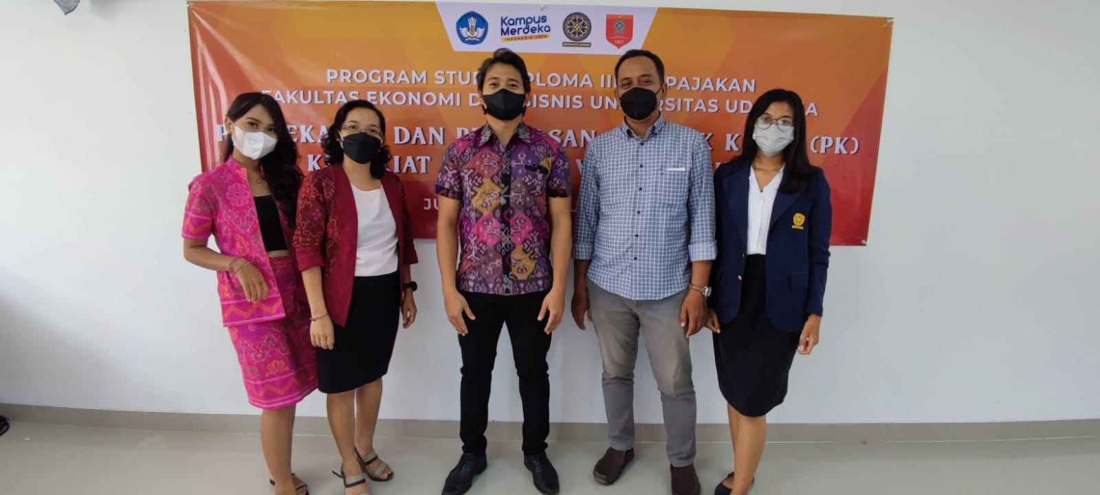 Program Studi (PS) Diploma III Perpajakan dan PS Diploma III Akuntansi FEB Unud pada Jumat, 25 Februari 2022, melaksanakan kegiatan pembekalan praktek kerja (PK) sebagai bagian dari proses tugas akhir studi bagi mahasiswa tingkat akhir (semester VI). Kegiatan ini dilaksanakan dengan tujuan agar mahasiswa memiliki pengalaman praktis terkait dengan isu-isu perpajakan sebelum memasuki dunia kerja nantinya. Pada saat yang sama, materi juga disampaikan kepada bapak/ibu Dosen yang ditugaskan sebagai dosen pembimbing PK.