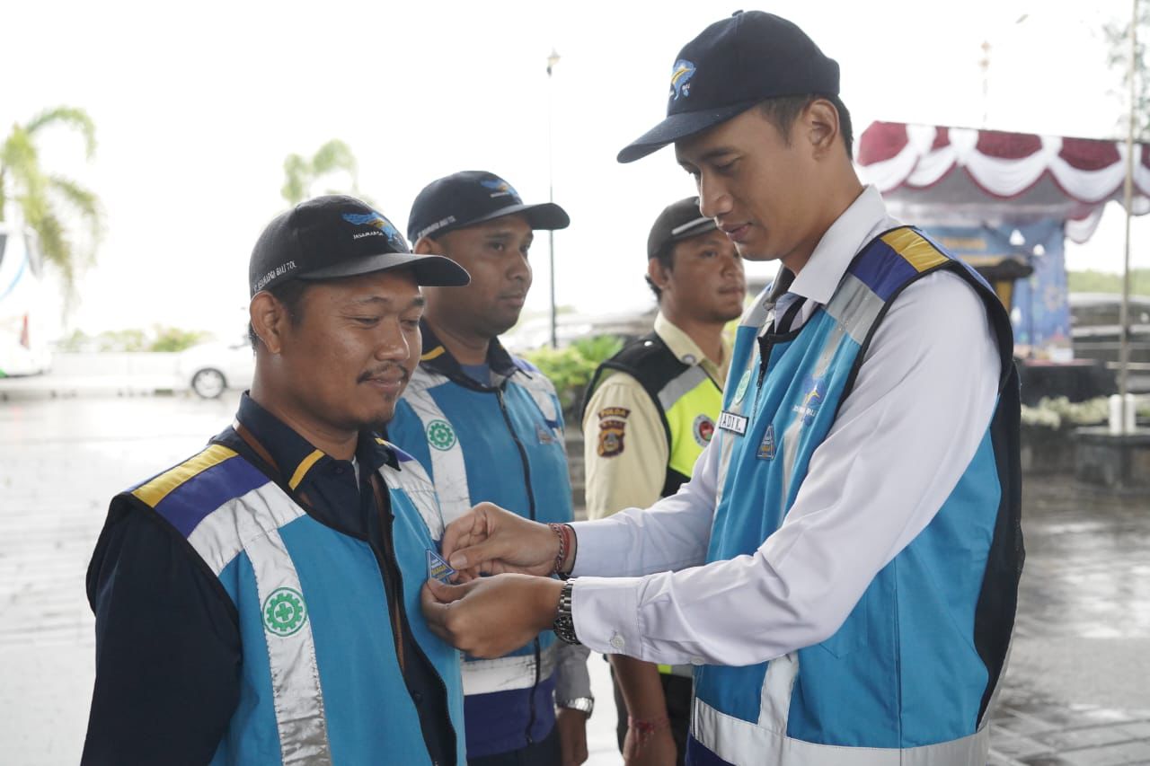 SIAGA NATARU – PT Jasamarga Bali Tol (PT JBT) menggelar Kick Off Siaga Natal 2024 dan Tahun Baru 2025 (Nataru 2024/2025). Acara ditandai dengan penyematan pin kepada perwakilan Tim Satgas.