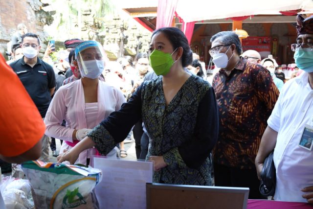 “Hingga kini covid-19 belum ada obatnya, untuk itu jangan berputus asa, tetap jalankan protokol kesehatan. Supaya Bali ini segera aman, hidup normal kembali, masyarakatnya tambah sejahtera dan pariwisata kembali seperti semula. Kami harap gotong royong dari kita semua ini akan menguatkan, untuk Bali bisa bangkit kembali,” tegas putri dari Presiden RI ke 5 Megawati Soekarnoputri ini.