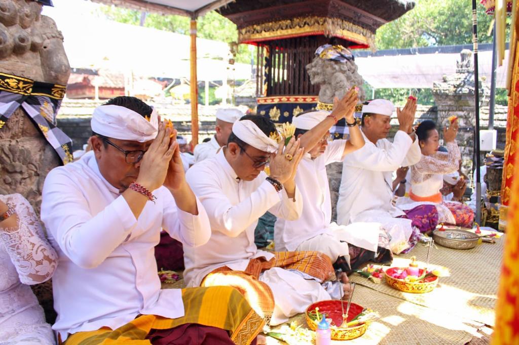 PUJAWALI – Suasana pujawali di Pura Dalem Sakenan, Desa Adat Serangan Kota Denpasar.