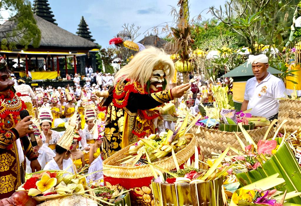Wali Kota Denpasar, I Gusti Ngurah Jaya Negara ngayah Topeng Dalem Arsa Wijaya dan Topeng Sidakarya serangkaian Pujawali, Melaspas Ageng, Nandur Pedagingan dan Ngenteg Linggih, Sabtu (10/9) di Pura Parahyangan Agung Jagatkartta Gunung Salak, Bogor Jawa Barat. Dalam pelaksanaan Bhakti Pujawali ini yang bertepatan dengan Purnama Katiga, juga dihadiri Wakil Wali Kota Denpasar I Kadek Agus Arya Wibawa, Ketua TP PKK Denpasar, Ny. Sagung Antari Jaya Negara, dan istri Wakil Wali Kota Denpasar Ny. Ayu Kristi Arya Wibawa dan beberapa Seniman Denpasar.
